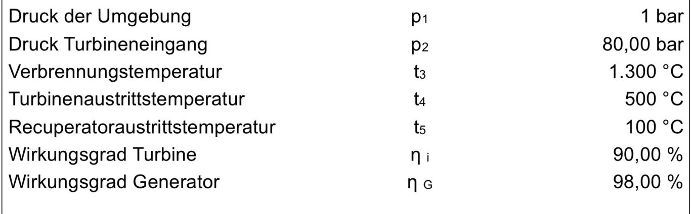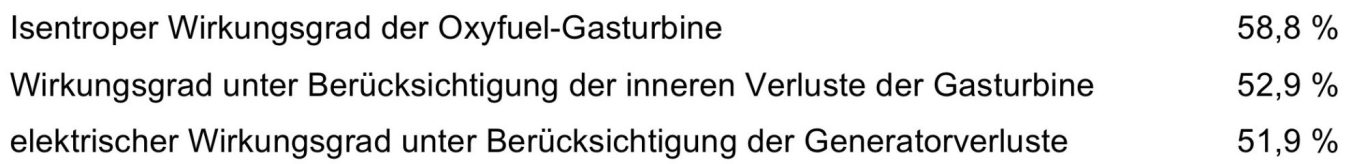 Die wichtigsten Ergebnisse einer Prognoseberechnung für eine Oxyfuel-Gasturbine mit Recuperatoren sind nachfolgend zusammengestellt: