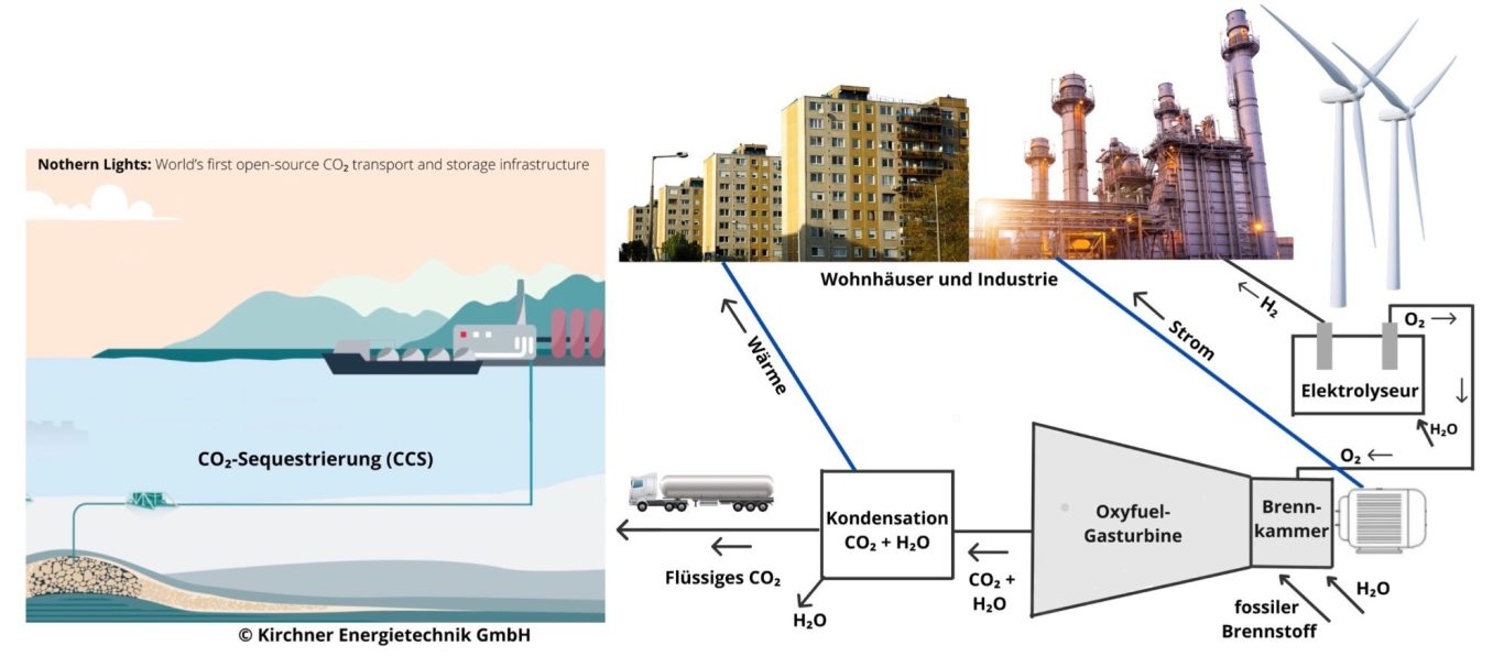 Da das Abgas bei der Oxyfuel-Gasturbine ganz überwiegend aus CO₂ und H₂O mit sehr kleinen Anteilen anderer Gase, wie O₂ und CO, besteht lässt sich durch Kondensation des H₂O leicht reines CO₂ herstellen. Das reine CO₂ kann nachfolgend mit CCS-Technik (carbon capture and storage) unterirdisch gespeichert oder mit CCU-Technik (carbon capture and utilysation) stofflich genutzt werden.