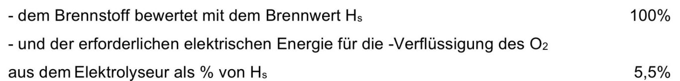 Auf Basis dieser Parameter errechnen sich für das Verfahren zum Betrieb eines Kraftwerks mit Oxyfuelmotor und Recuperatoren die nachfolgend zusammengestellten Wirkungsgrade, jeweils bezogen auf den Brennwert Hs des eingesetzten Brennstoffs: